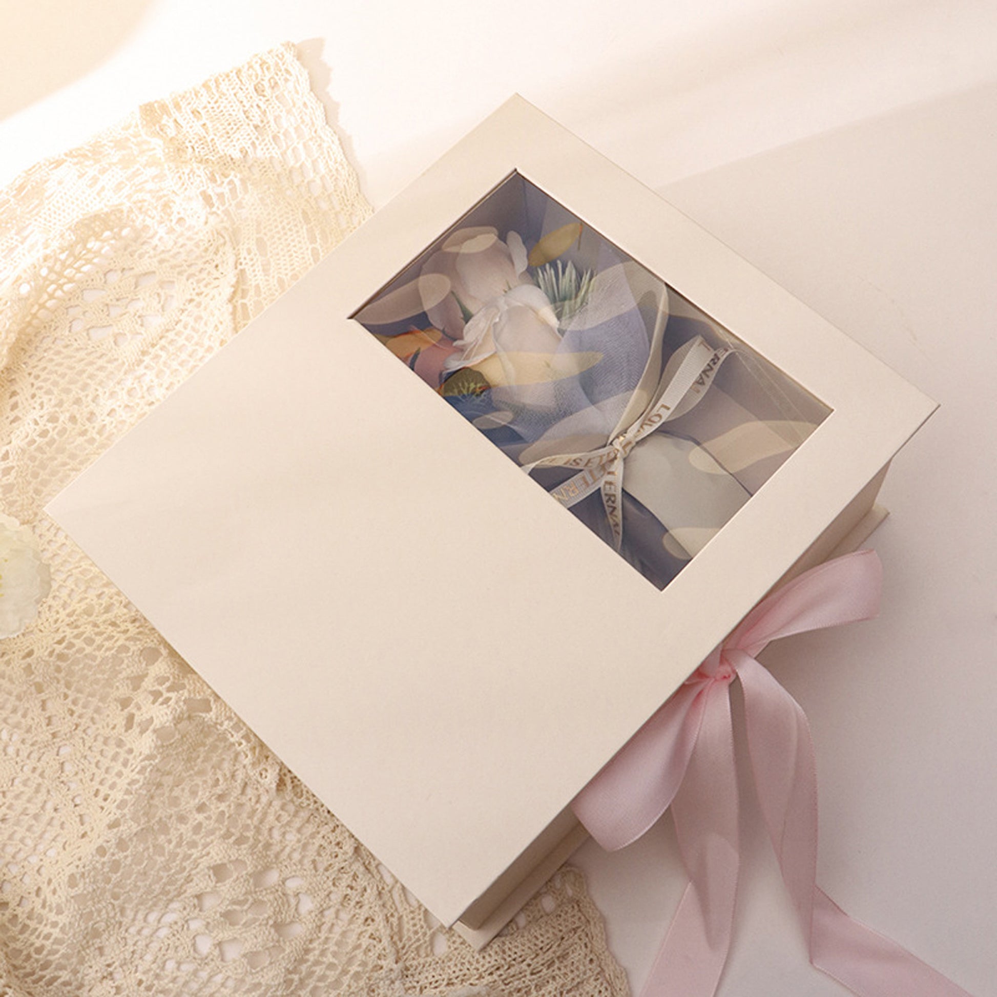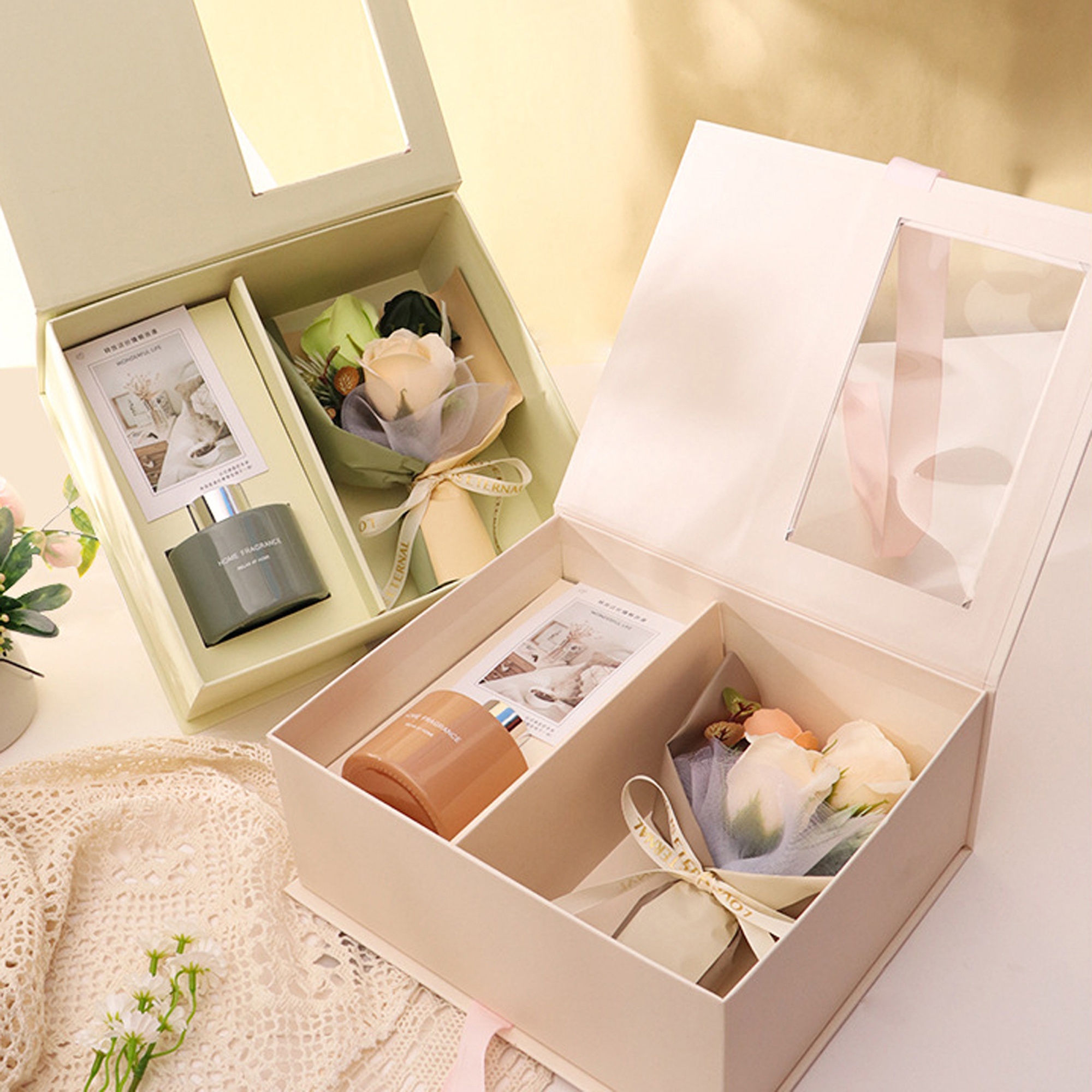 18.2*8.2*4.2inch 1pc Pampering Present Sets for Women with Translucent Present Box, Aromatherapy, Aromatherapy Card, Soap Flower Aromatherapy Kits