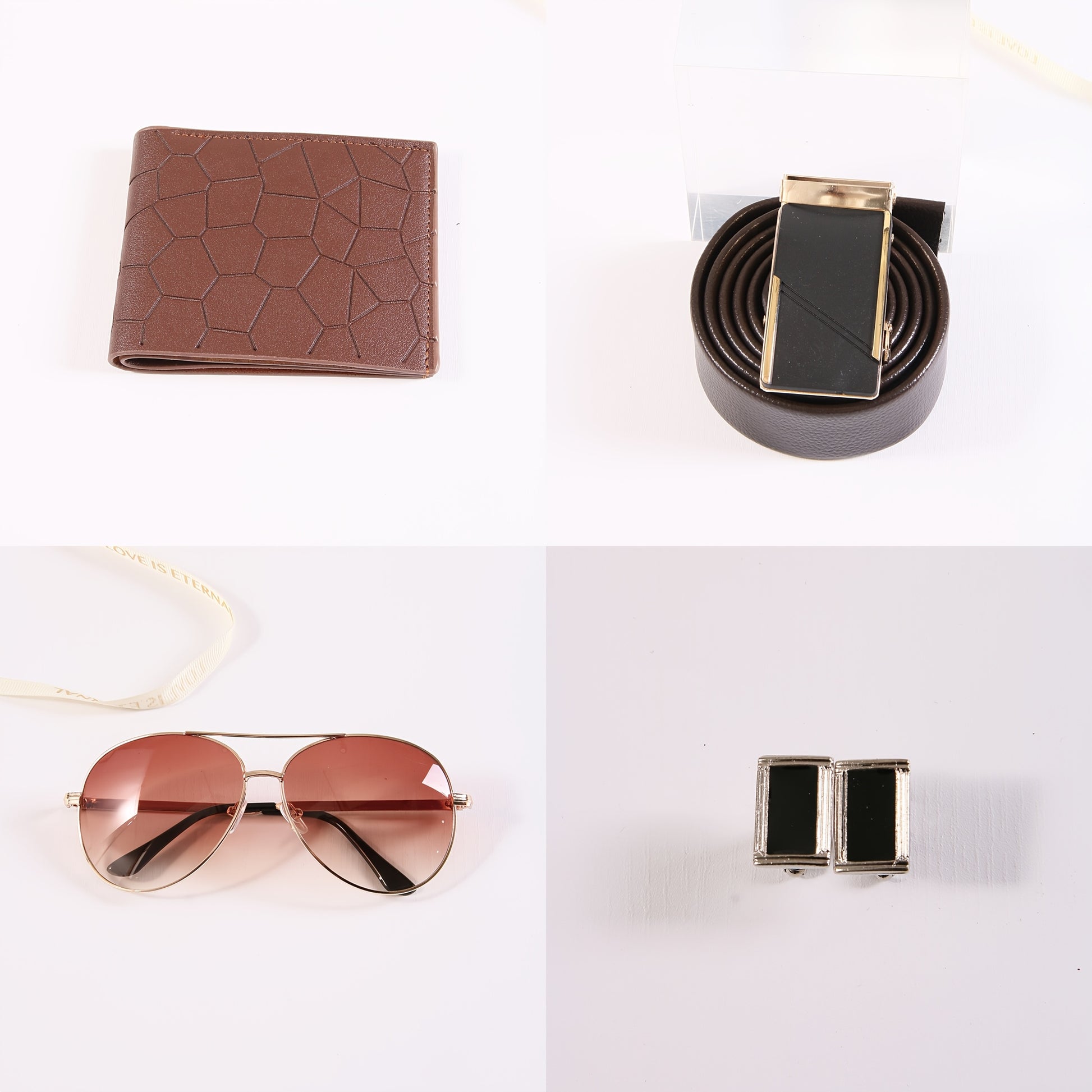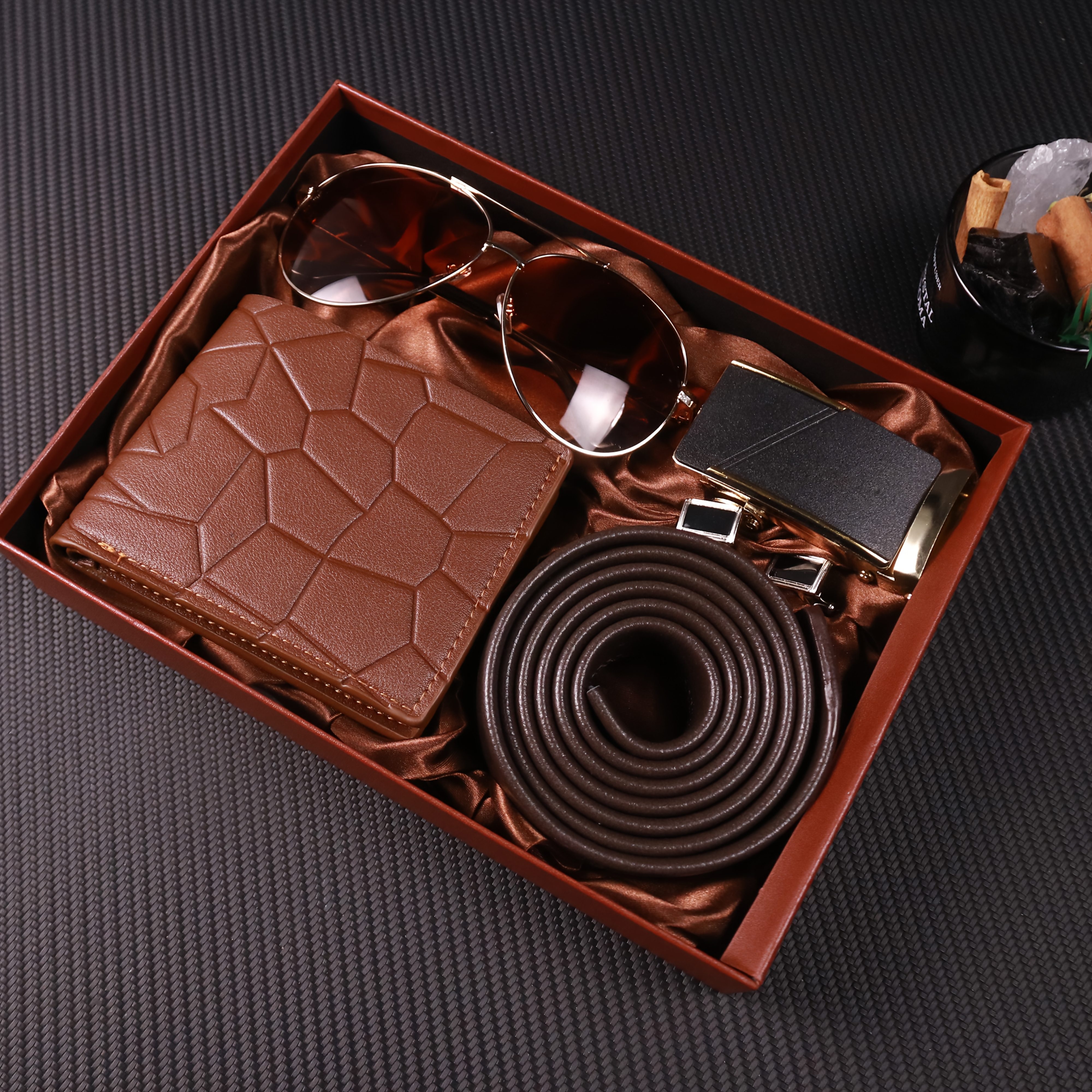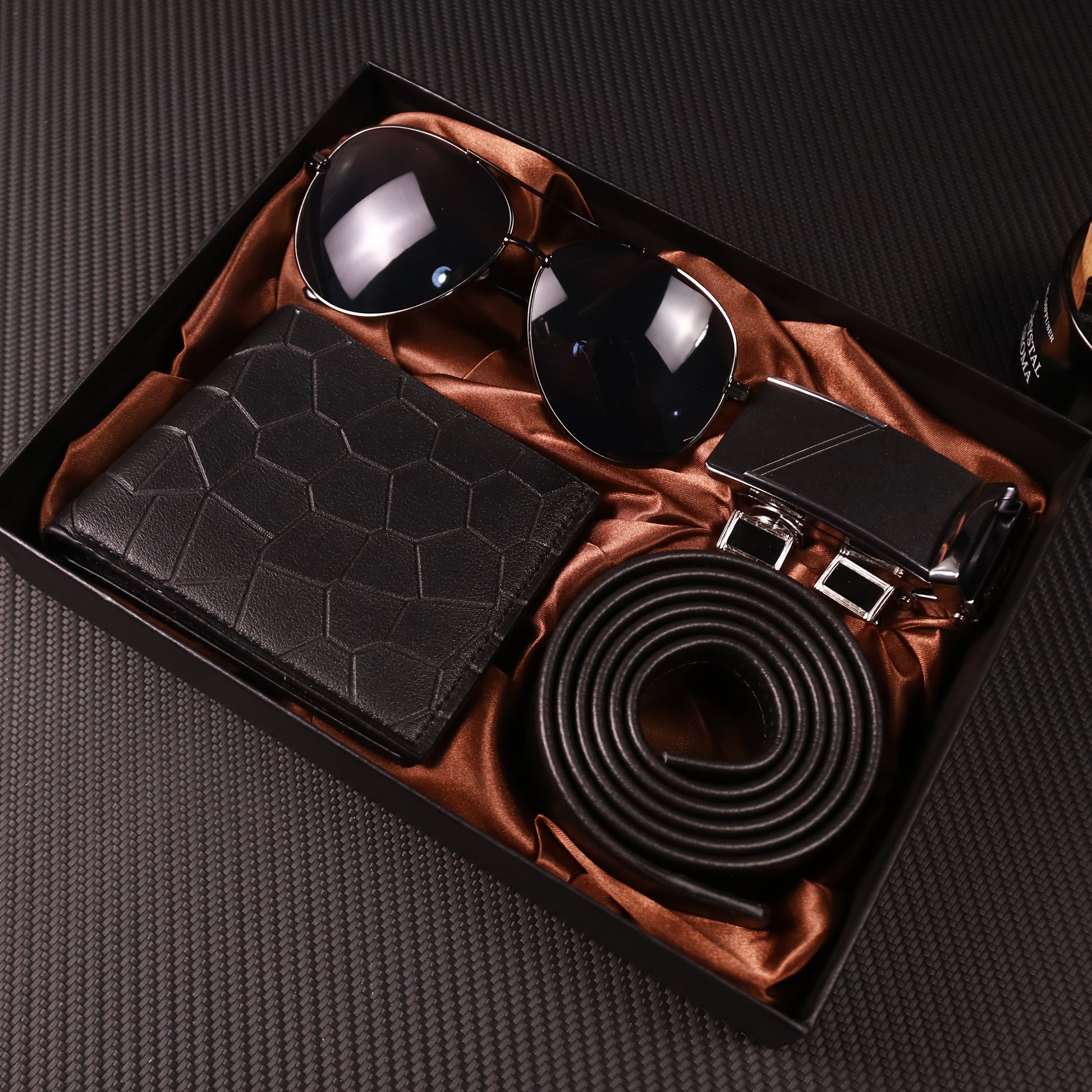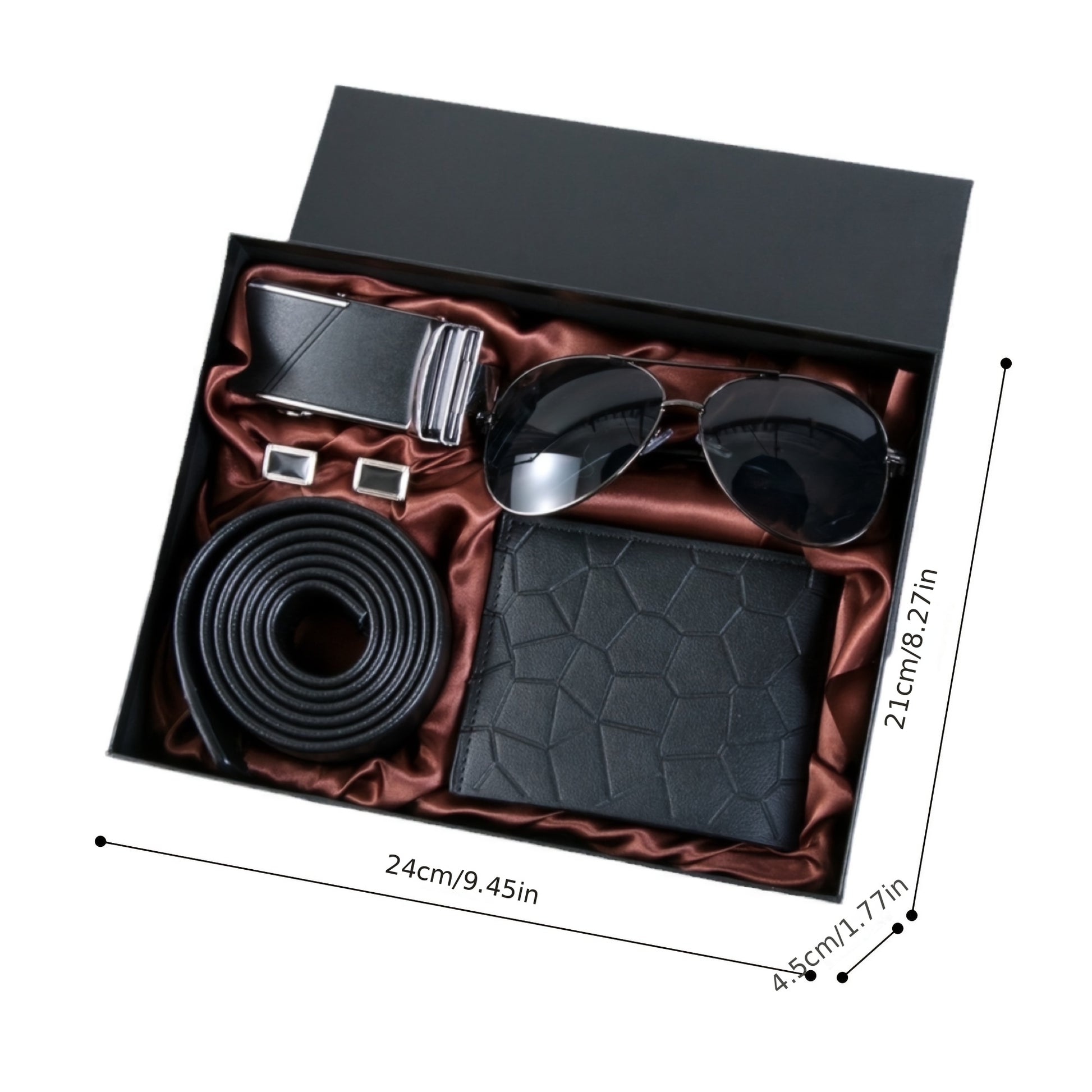 6pcs Men'S Gift Box Set, Including Glasses, Automatic Buckle Belt, Wallet, Two Cufflinks, Exquisite Gift Box, Valentine'S Day, Thanksgiving, And Father'S Day Gift Boxes.