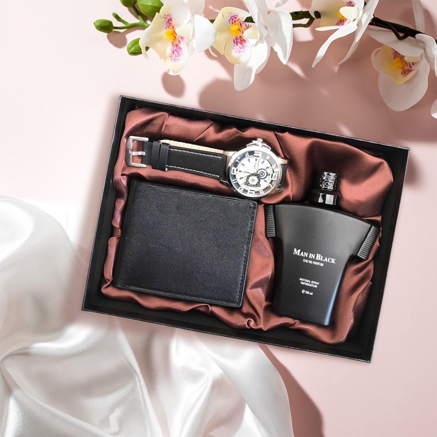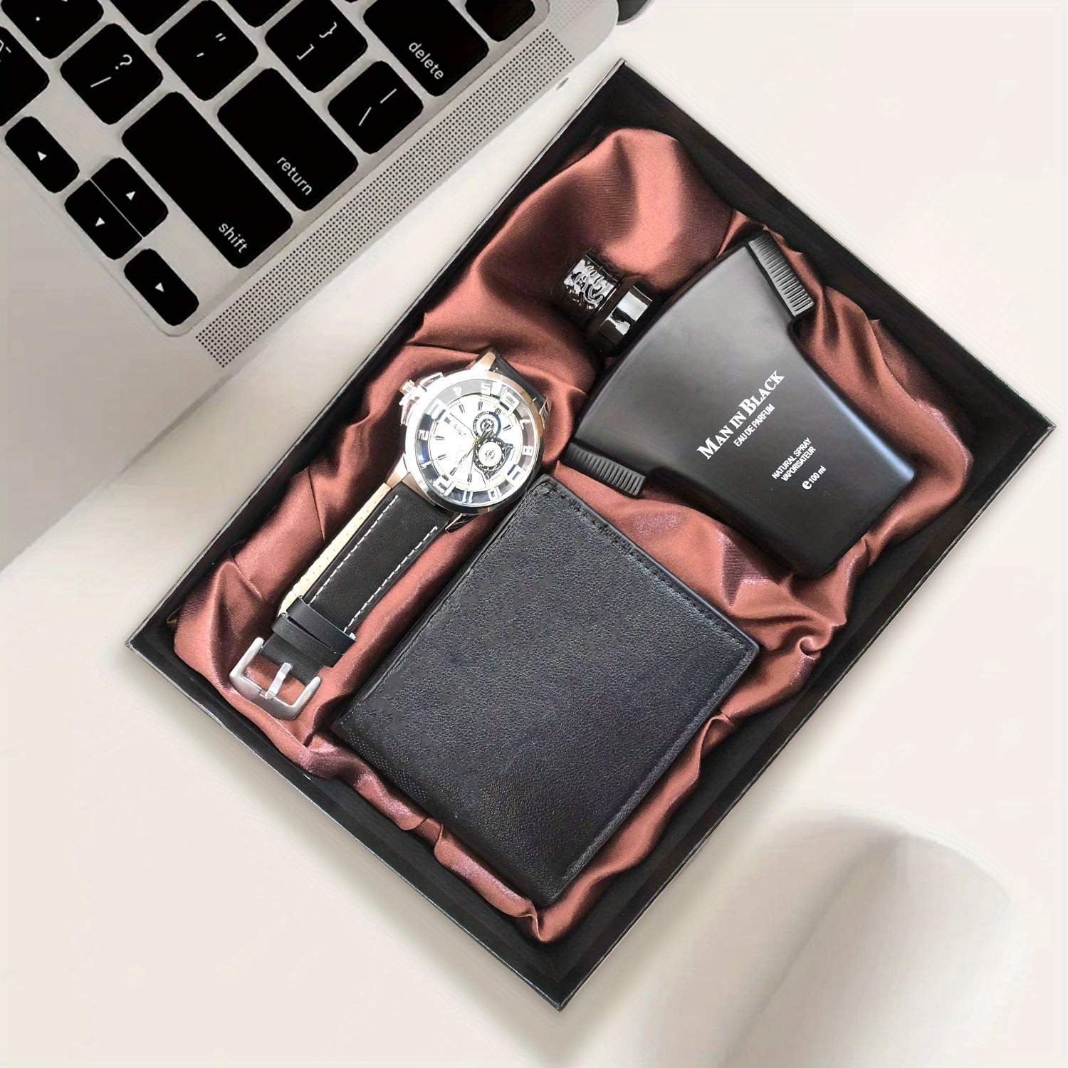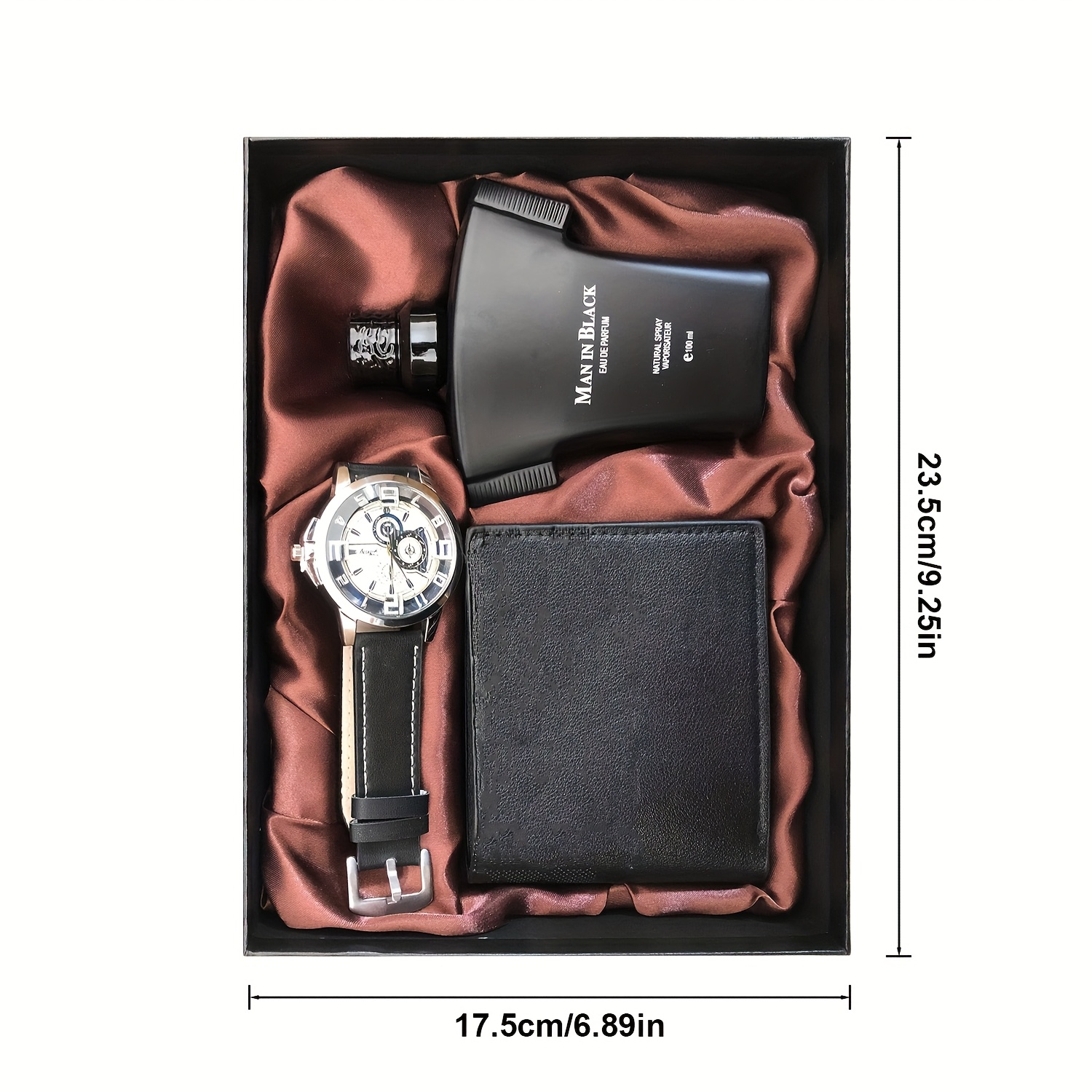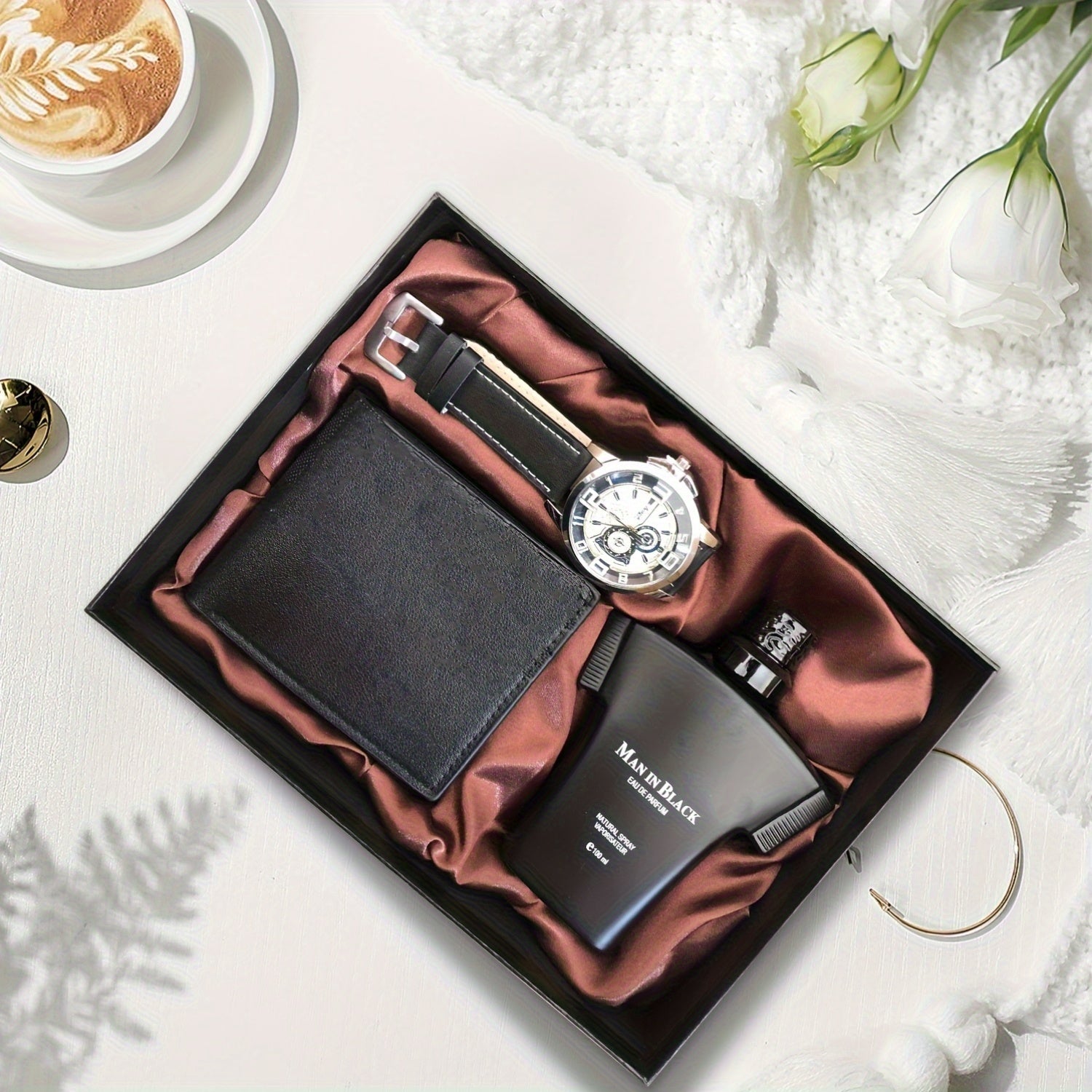 Men'S Premium 3pcs Luxury Gift Set, Business Style Wallet, Chronograph Watch&Cologne Trio-Elegant Fragrance Accessories For Festive Occasions, Best Father'S Day Gifts