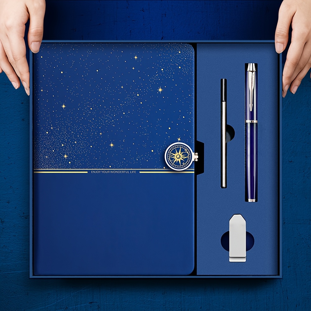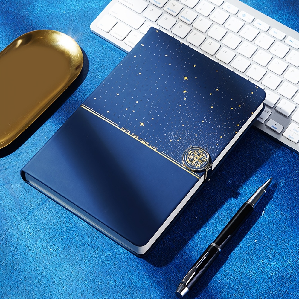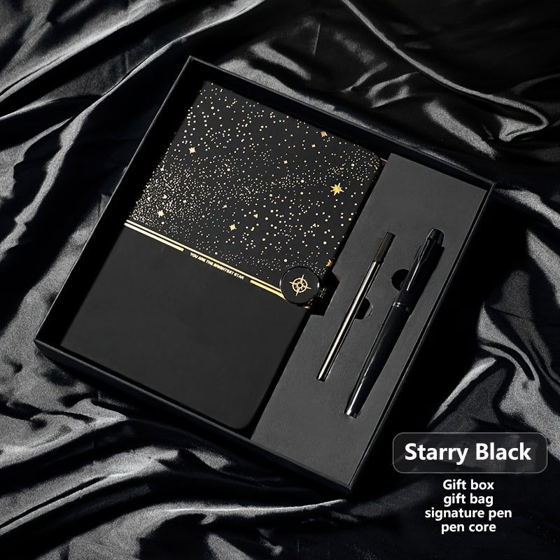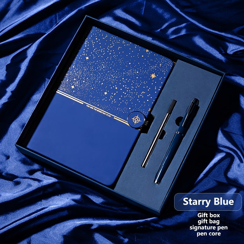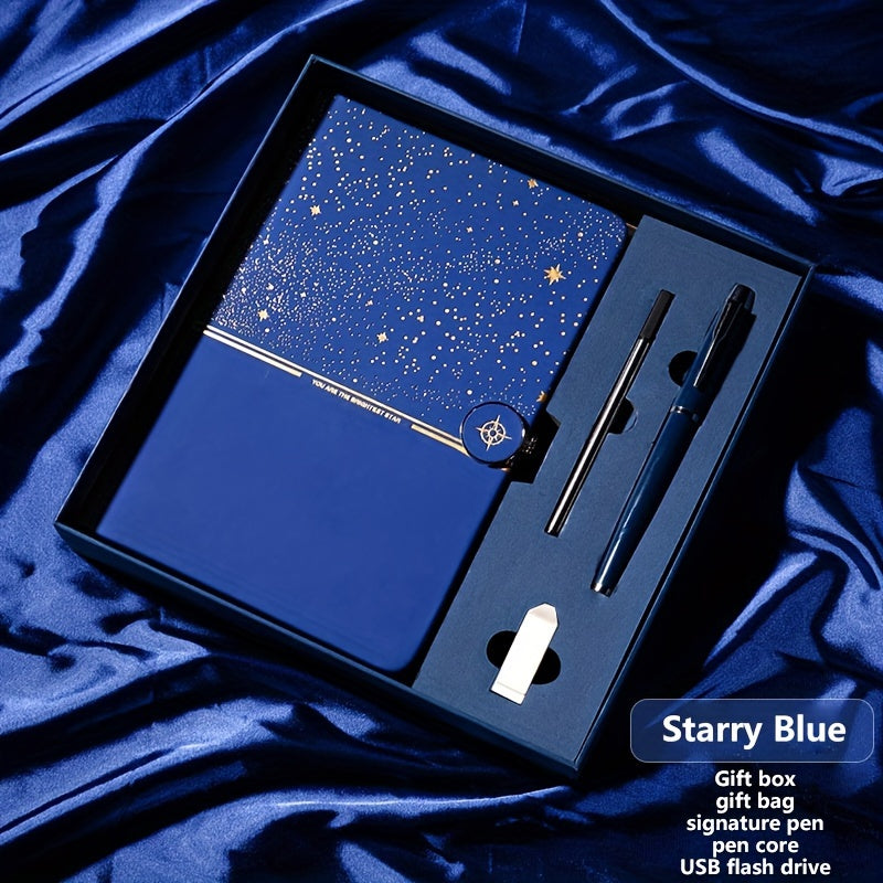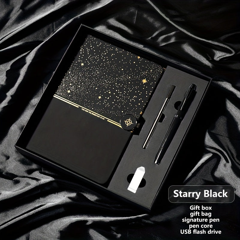 [Starry Sky Notebook] 4pcs High End Business Notebook Set With Magnetic Buckle And Imitation Leather Cover - Deep Starry Sky - Comes With Signature Pen USB Drive And Pen Core, Birthday, Christmas Day, And Handheld Gifts