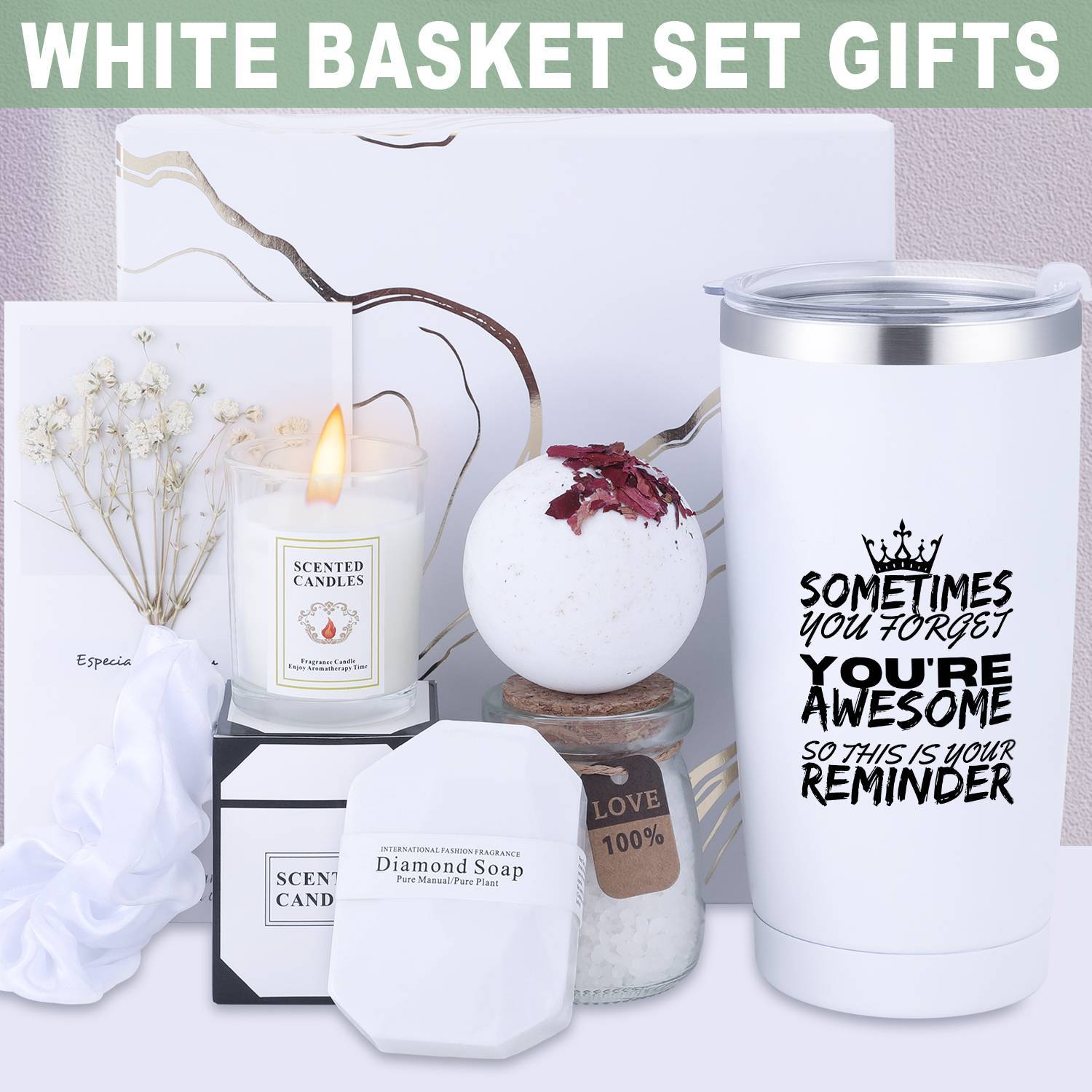 Women Basket Set Stuff White Gifts for Her Mom Mother Daughter Sister Girlfriend Gf Wife Aunt Friend Coworker Bestie Birthday Unique Cool Cute Funny Stuff Valentines Mother Day Christmas Xmas Aesthetic Beauty Present